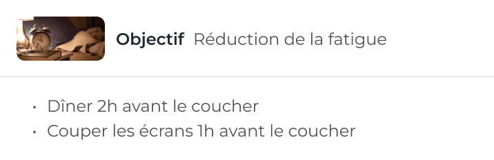 En quelques minutes, vous explorez les grands piliers de votre santé : qualité du sommeil, habitudes alimentaires, activité physique, gestion du stress et équilibre mental.